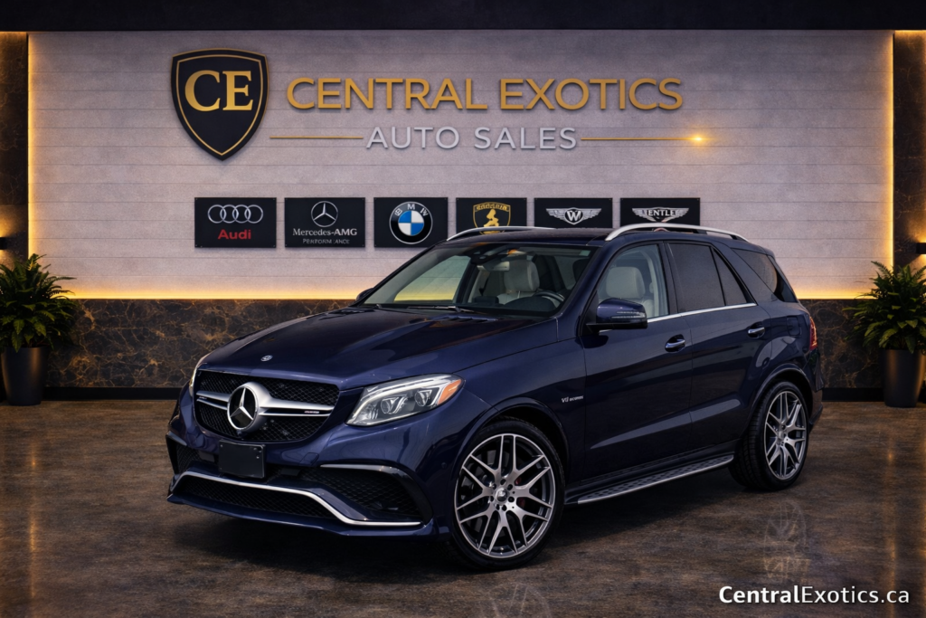 Now available at Central Exotics Auto Sales is this powerful and fully equipped 2016 Mercedes-Benz GLE 63 S AMG, a true high-performance SUV combining AMG engineering with everyday practicality. Finished in a deep Dark Blue exterior with Porcelain White leather interior, this unit stands out with a clean, high-contrast luxury spec.